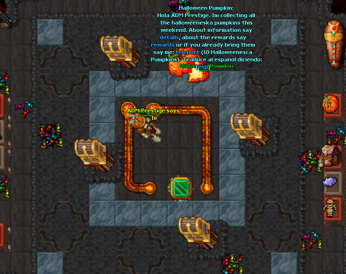 Get the probability of winning Pumpkin Mummy Outfit, Halloween Hat (Festive), Expedition of Terror Backpack, Lottery Tokens, Halloween Fireworks, Toy Spider or Candies. | 10 Halloweenesca Pumpkins |
